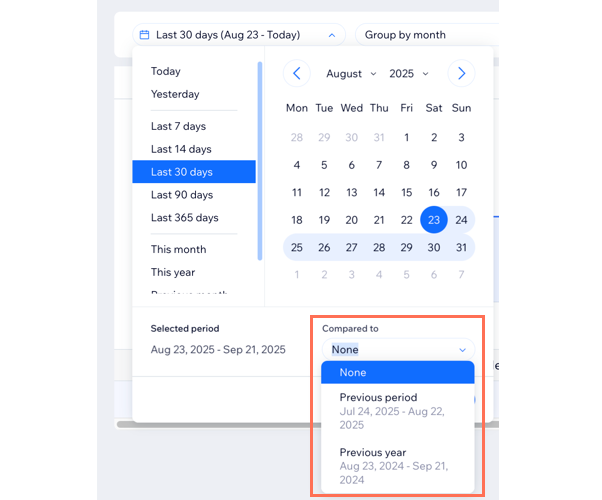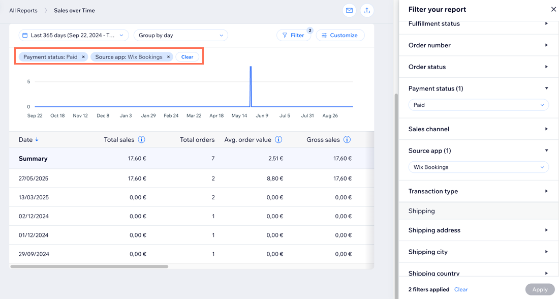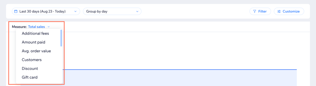 Tailor the view to your specific needs by adjusting the report's time period, filtering with advanced metrics, adding columns, and more. For example, filter sales reports to see orders placed online in the last quarter or add columns in traffic reports to get more details on visitors' session length.