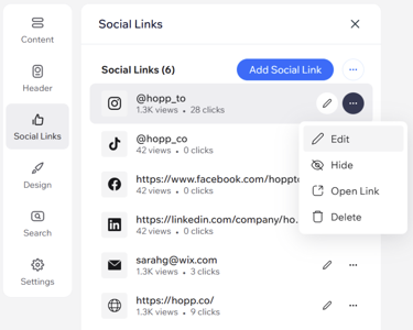 Yes, you can edit, hide, or delete your social links at any point. Click the More Actions icon