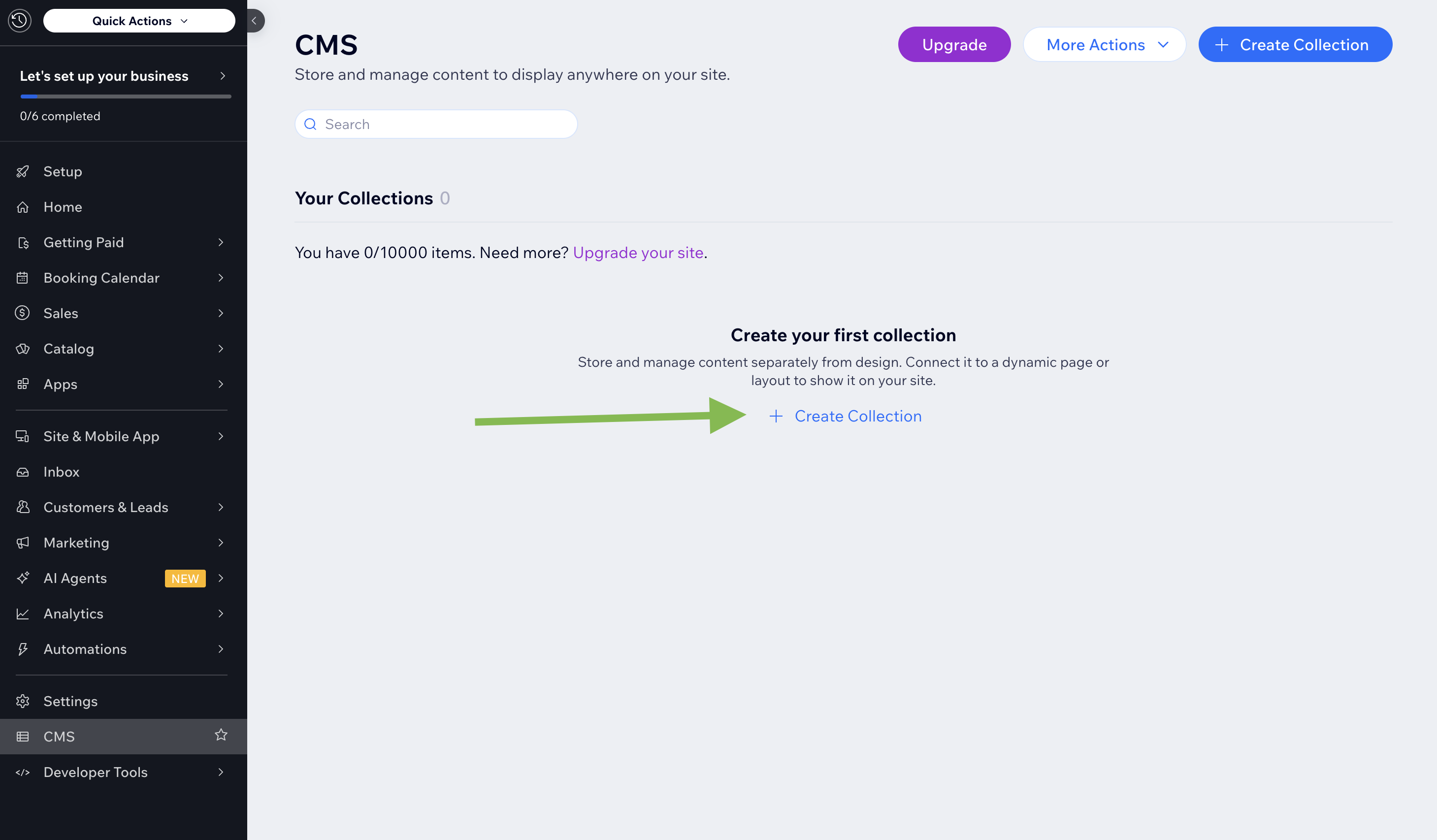If you are experiencing this issue, you may create a Collection from your site's Dashboard > CMS > Create Collection: