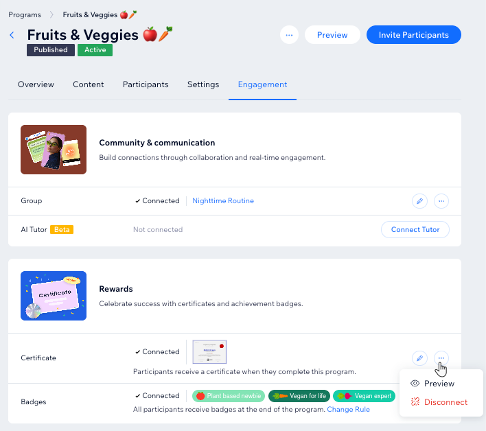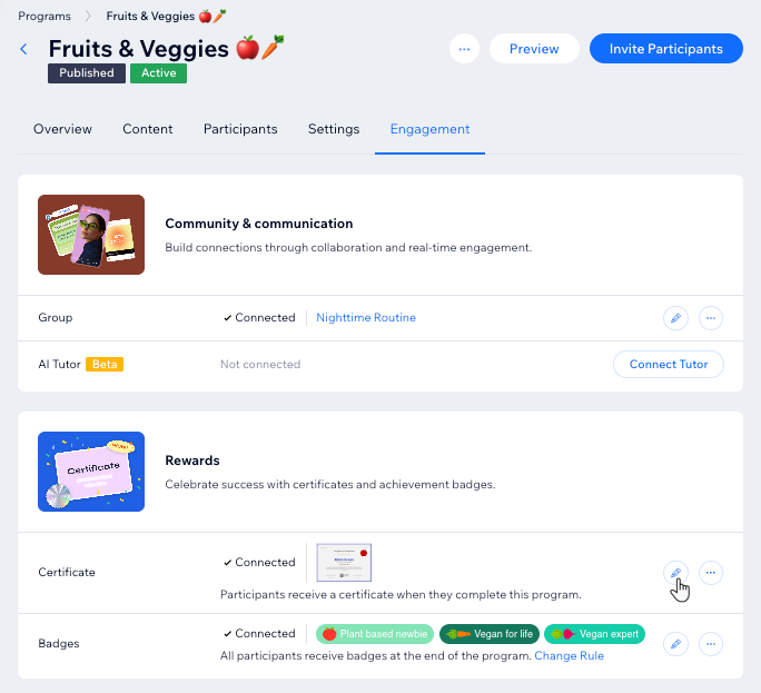 To get started, choose the relevant program. From your program's settings page, you can create a certificate of completion for your participants.