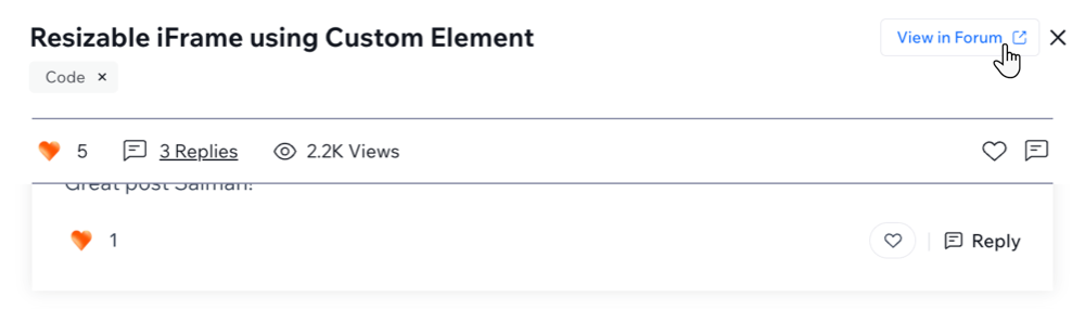 Click View in Forum at the top of the topic to open the discussion in the Wix Studio Community forum. This opens a new tab.