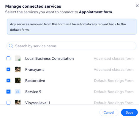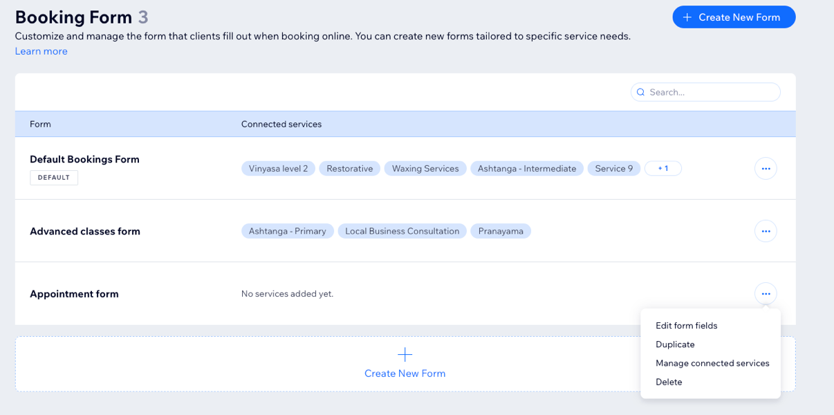 Start with a default form to collect general client information, then customize or create new forms for other services. For example, a yoga instructor can use the default form for general bookings and a customized form for advanced classes to gather additional details like experience levels and health concerns.