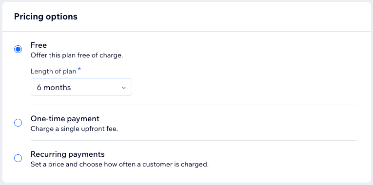 When you create your first membership plan, the Pricing Plans app is automatically added to your site (if it isn’t already). It powers your membership offerings and creates a dedicated page where visitors can view and purchase plans. You choose the plan details, benefits, pricing, and settings.