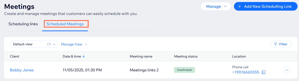 Once you create a meeting, you can share the link with clients in a way that works best for you. Copy the link from the meetings manager to send by email, social media, or messaging apps like WhatsApp. You can also use a QR code, or add the link to your site so clients can schedule meetings directly from your site.