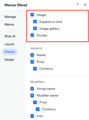 Click a question below to learn more about customizing how your menu looks.
