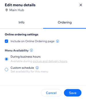 - Select the Include on Online Ordering page checkbox to display the menu on your ordering page.