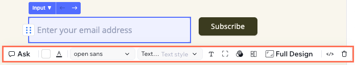 When you’re in edit mode, you can select any element on your site and click Ask in the floating toolbar to make AI-powered changes to that specific element.