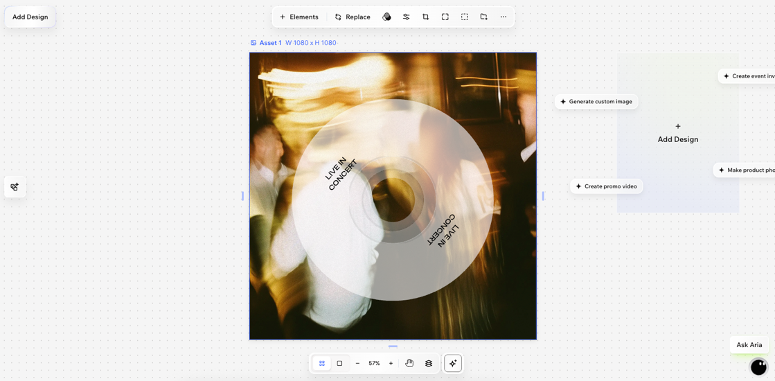 on the chat to upload a reference image, then describe what you want to create using that image. - Promote your business on social media: Create posts tailored to the right dimensions for social media for a product launch, to promote a product or service, or to announce an event. To begin, tell Aria to "Create a social media post".