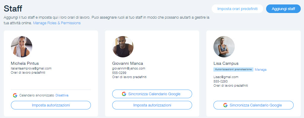 Wix Bookings ti consente di assegnare diversi livelli di autorizzazione al tuo personale e ad eventuali altre persone che ti aiutano a creare e gestire il tuo sito: