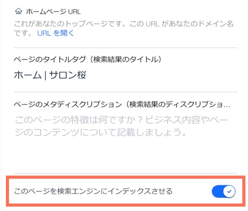 - 「このページを検索エンジンにインデックスさせる」トグルを有効にします。