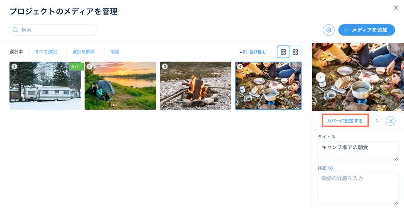 - 「プロジェクトを管理」をクリックし、プロジェクトの詳細を編集します。ポートフォリオのプロジェクトを編集する方法はこちら