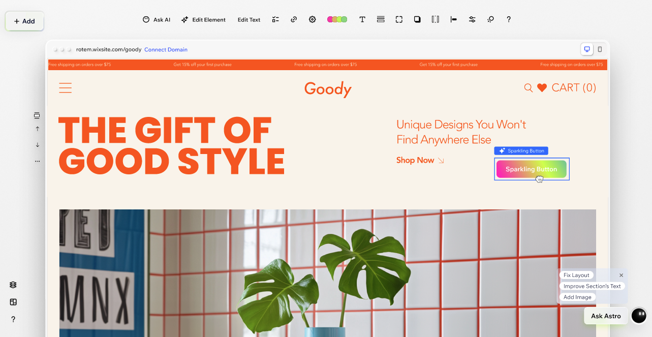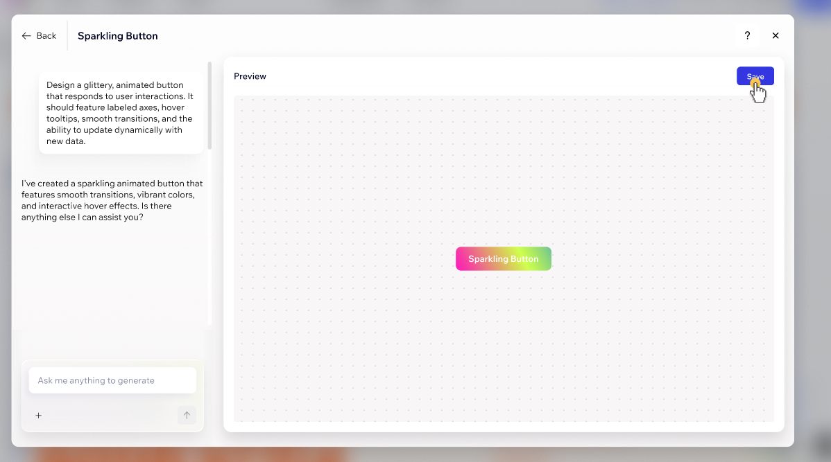 - (オプション)アクションバーのデザインオプションを使用してパーツをカスタマイズするか、AI チャットを使用してデザイン、機能、スタイルをさらに調整します。