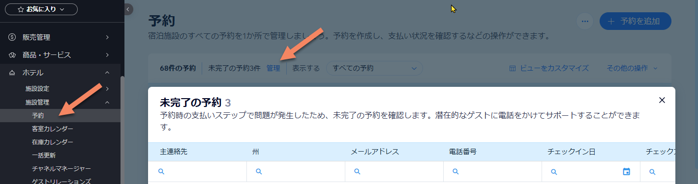 *オフライン決済を利用している場合も、未完了予約の顧客に連絡し、こちらで予約を手動作成することをおすすめいたします。