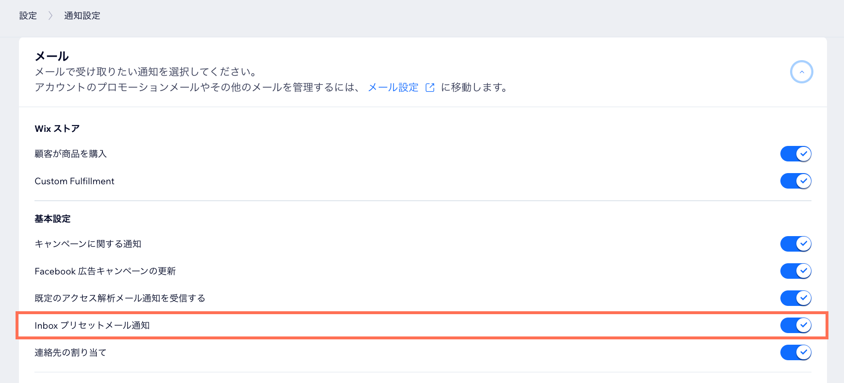 Wix Inbox:通知設定を管理する