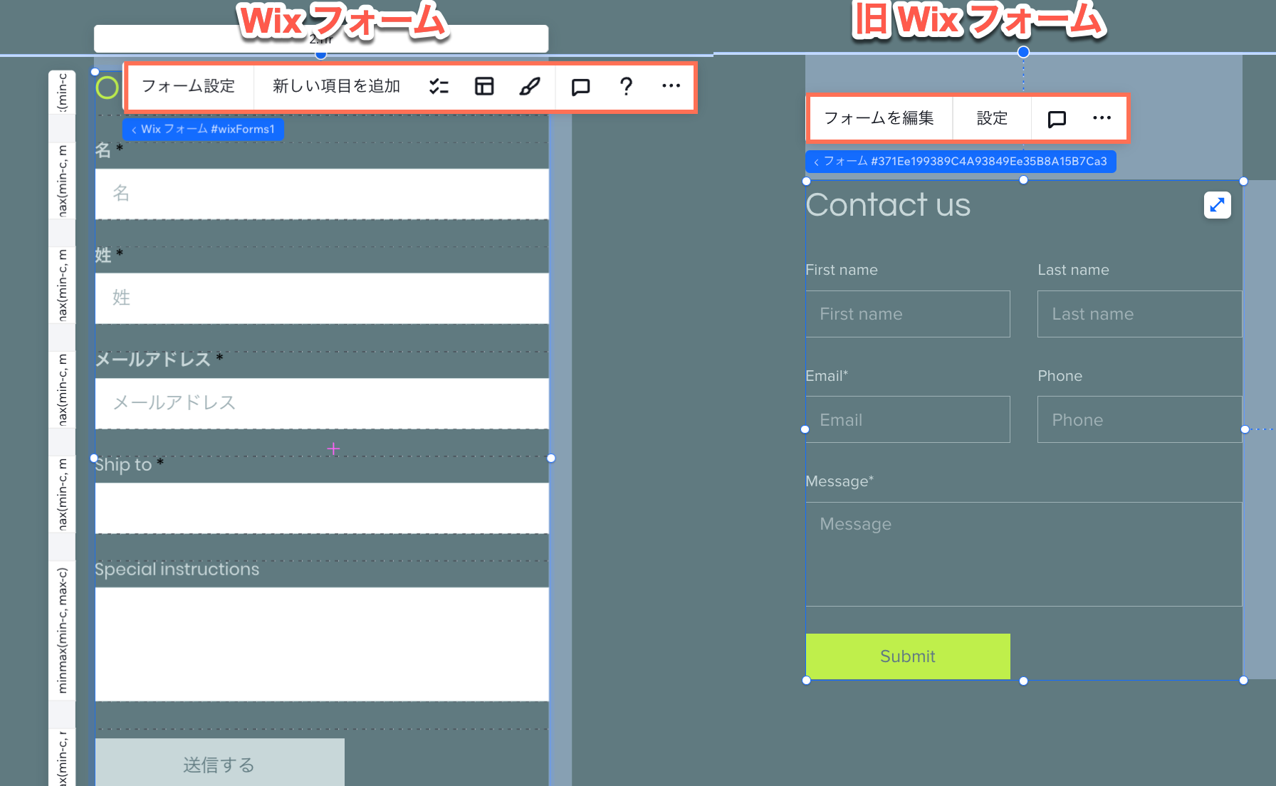 Wix Studio エディタで利用できるフォームのほとんどは、新 Wix フォームです。ただし、旧 Wix フォームを使用したい場合は、プリセットの注文フォームまたは寄付フォームを追加できます。