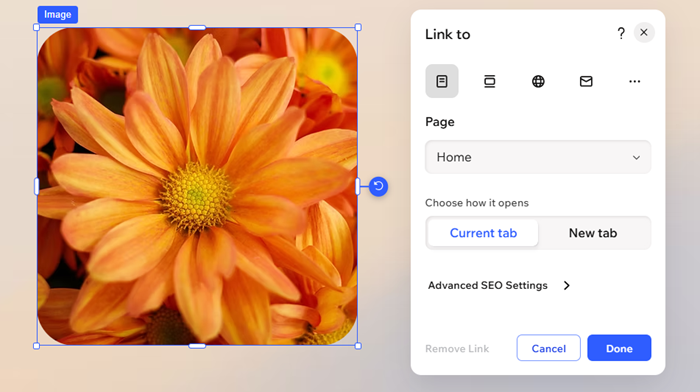 別のページ、ウェブサイト、文書などにリンクを設定して画像をクリッカブルなものにし、訪問者が簡単に目的の場所に移動できるようにします。