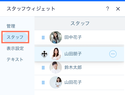- スタッフリストを並べ替える:各スタッフ横のパネルをドラッグして、リストを並べ替えます。