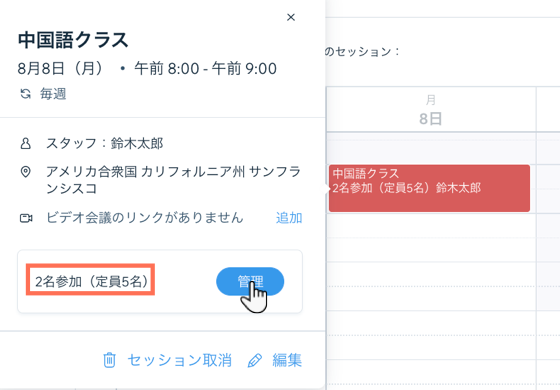 - 「今後のご予約」または「過去のご予約」から表示するセッションを選択します。