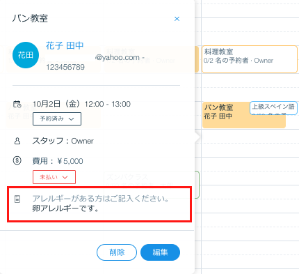 顧客からの回答は、ブッキングカレンダーですべての詳細を確認することができます。