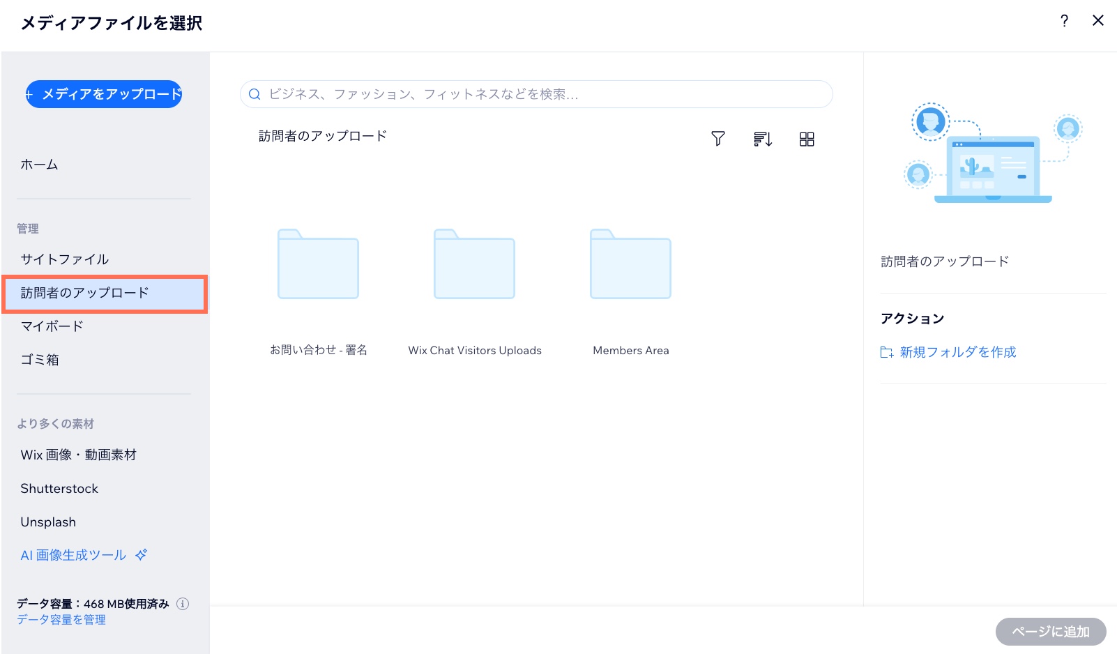 Wix メディア:メディアマネージャーでファイルを検索する