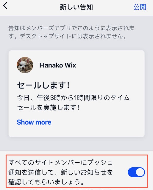 Wix モバイルアプリ:アプリにプッシュ通知でお知らせを送信する