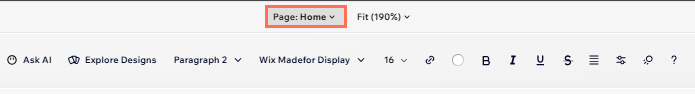 - Klik bovenaan de editor op de Pagina-dropdown.