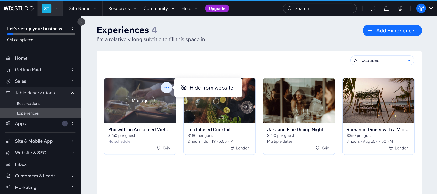 Begin met het creëren van een beleving om te bepalen wat gasten kunnen boeken en hoe het op je website wordt weergegeven.