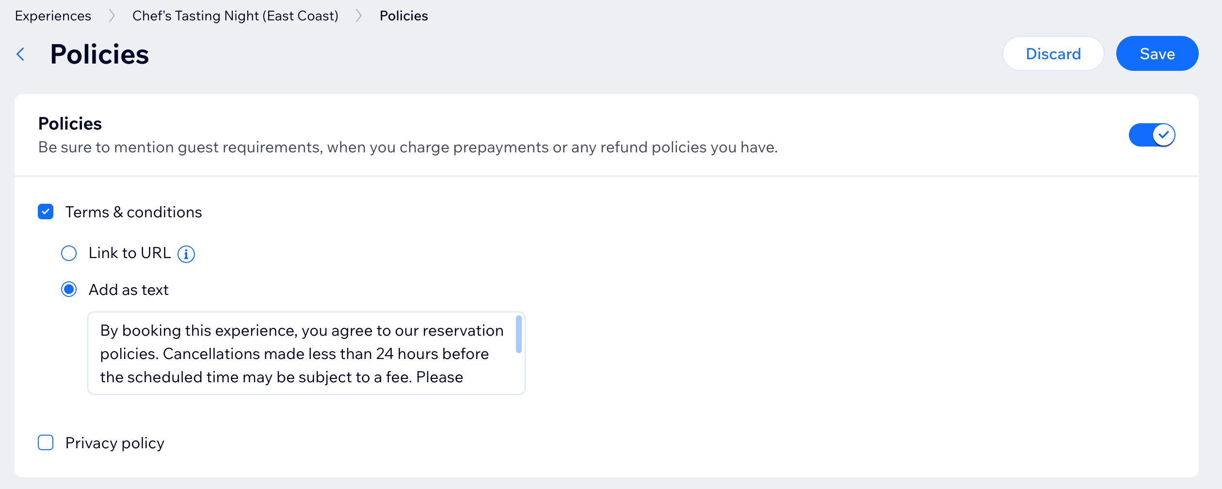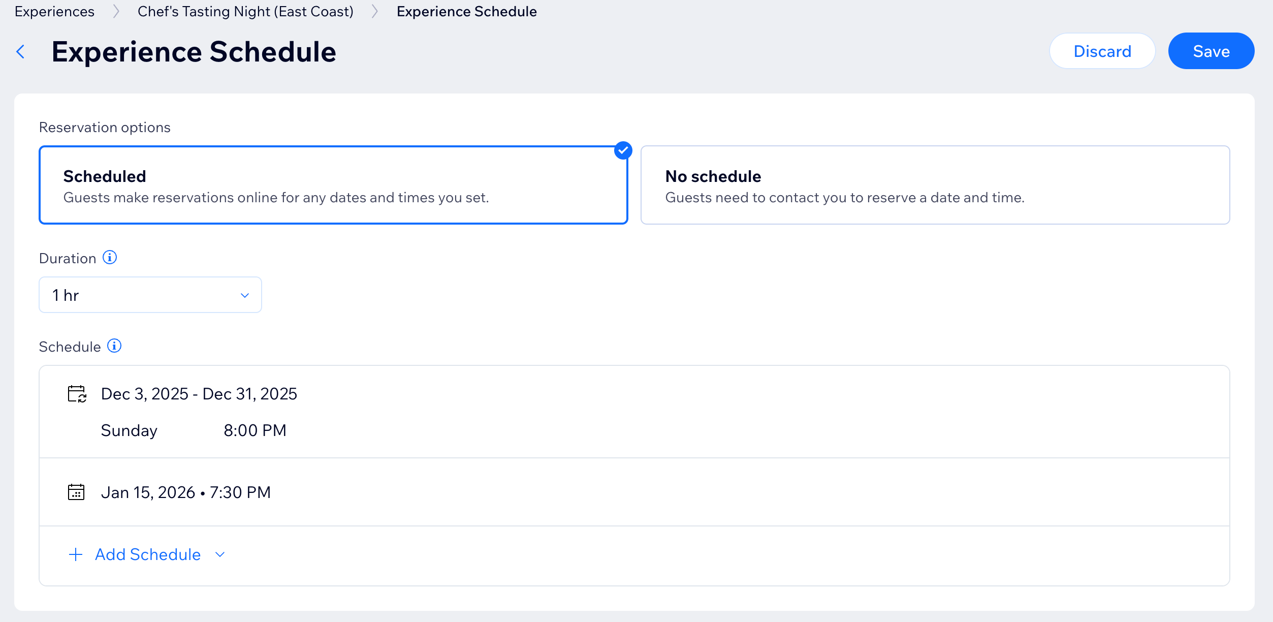 Zodra je beleving is ingesteld, kun je verfijnen hoe gasten deze boeken. Je kunt ze online laten reserveren voor bepaalde datums en tijden, of ze kunnen rechtstreeks contact met je opnemen om een reservering te maken.