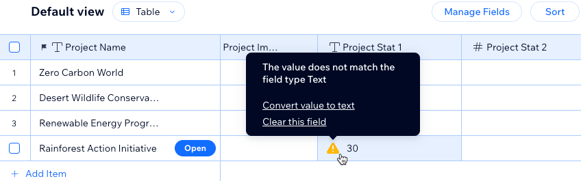 Se você tiver elementos da página ou filtros conectados ao seu campo atual, adicionar um novo campo garante que o conteúdo e as conexões existentes do seu site permaneçam intactos. Evite excluir ou editar o campo antigo até terminar de copiar seus dados e atualizar todas as conexões relevantes.