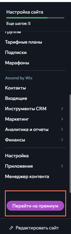 - Откройте Премиум-подписки в своем аккаунте Wix.