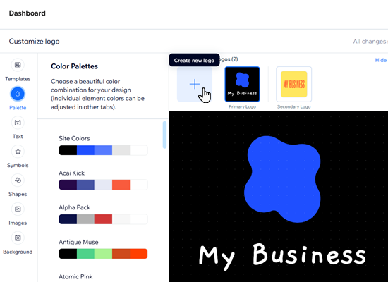 Kullanıma hazır bir logonuz mu var? Uygulamayı sitenize yükleyin ve hemen çalışmaya başlayın. Alternatif olarak, yeni bir şey denemek istiyorsanız, Wix Logo Oluşturucu'yu kullanarak markanızın kişiliğini yansıtan bir logo oluşturup tasarımlarla denemeler yapabilirsiniz.