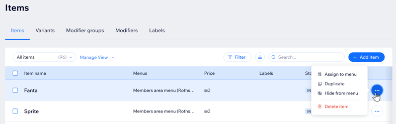 Ögelerinizi tek tek veya toplu olarak yöneterek menünüzü güncel tutun. Ögeleri tükendi olarak işaretleyebilir, farklı menülere atayabilir, menüden gizleyebilirsiniz ve ayrıntılarını düzenleyebilirsiniz.